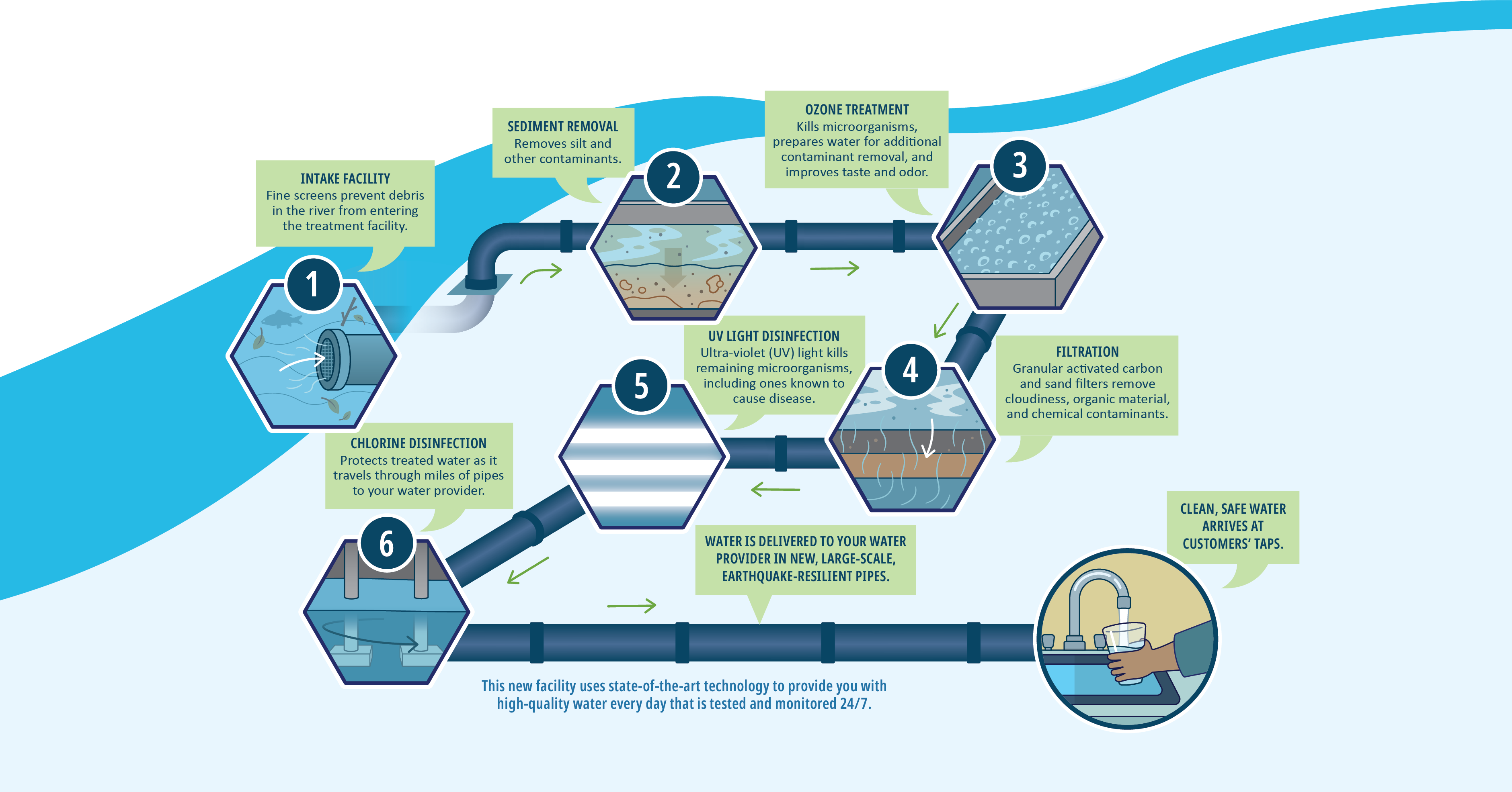 Steps for the new state-of-the-art treatment plant will include enhanced coagulation sedimentation, ozone and ultraviolet treatment, granulated activated carbon filtration, sand filtration, and chlorine disinfection (learn more here).